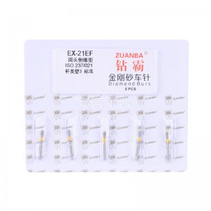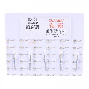 【結構及組成】由車針柄和工作部分組成。其中車針柄由不銹鋼材料制成,工作部分鍍有金剛石顆粒。