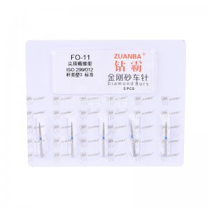 【結構及組成】由車針柄和工作部分組成。其中車針柄由不銹鋼材料制成,工作部分鍍有金剛石顆粒。